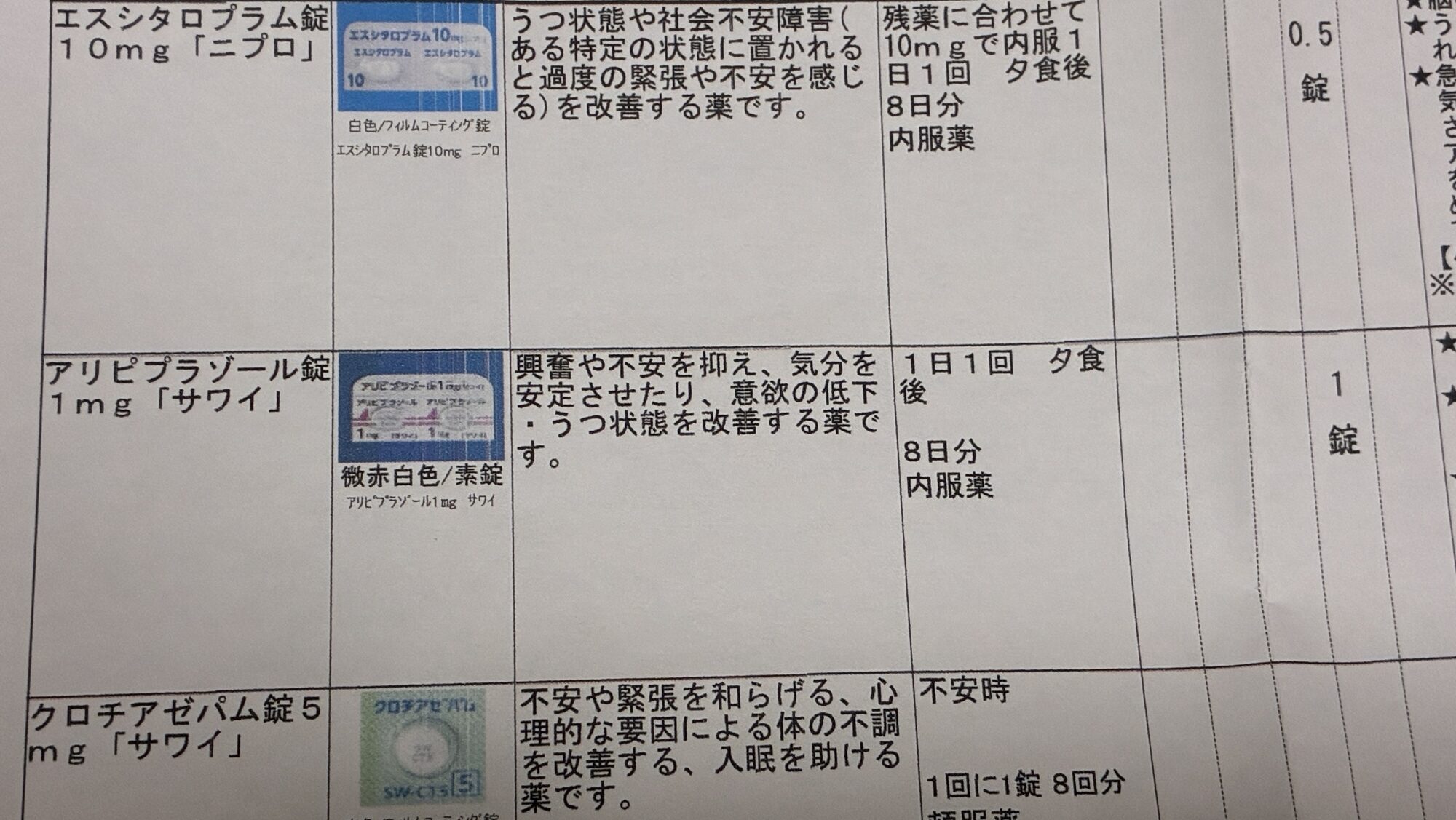 - とショックは受けたのですが、同時に安心というか「まぁうつ病なんだからしょうがないか」とも思えて、薬が増えた影響もあるかもしれませんが、今のところ昨日までより調子はいいです。