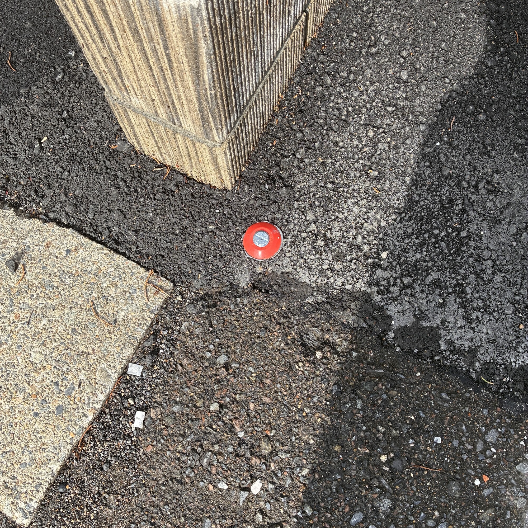 - 地面にたまにあるこういう樹脂製みたいな丸いやつ。昔から見てるけど、そういえば何か知らない。